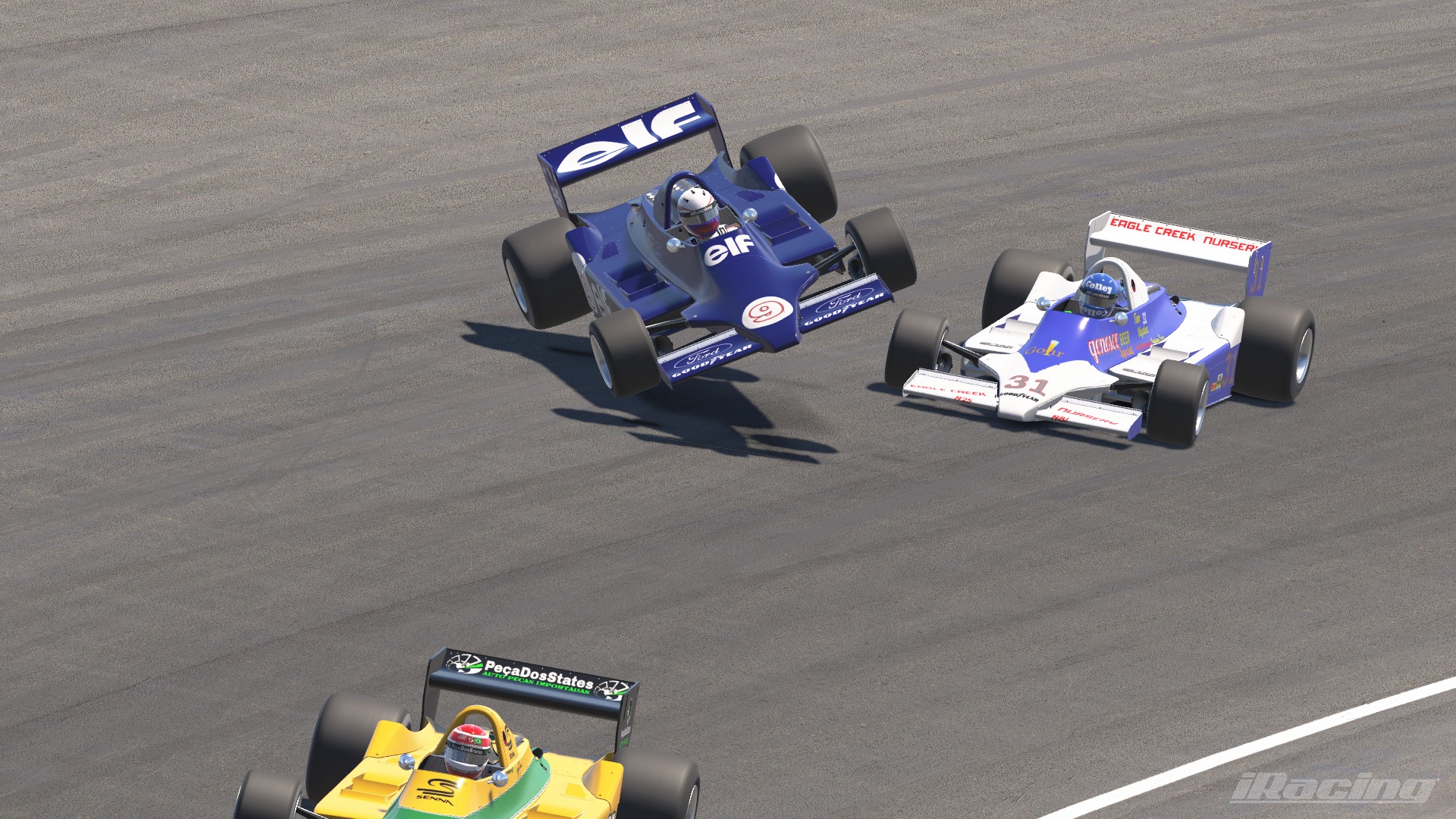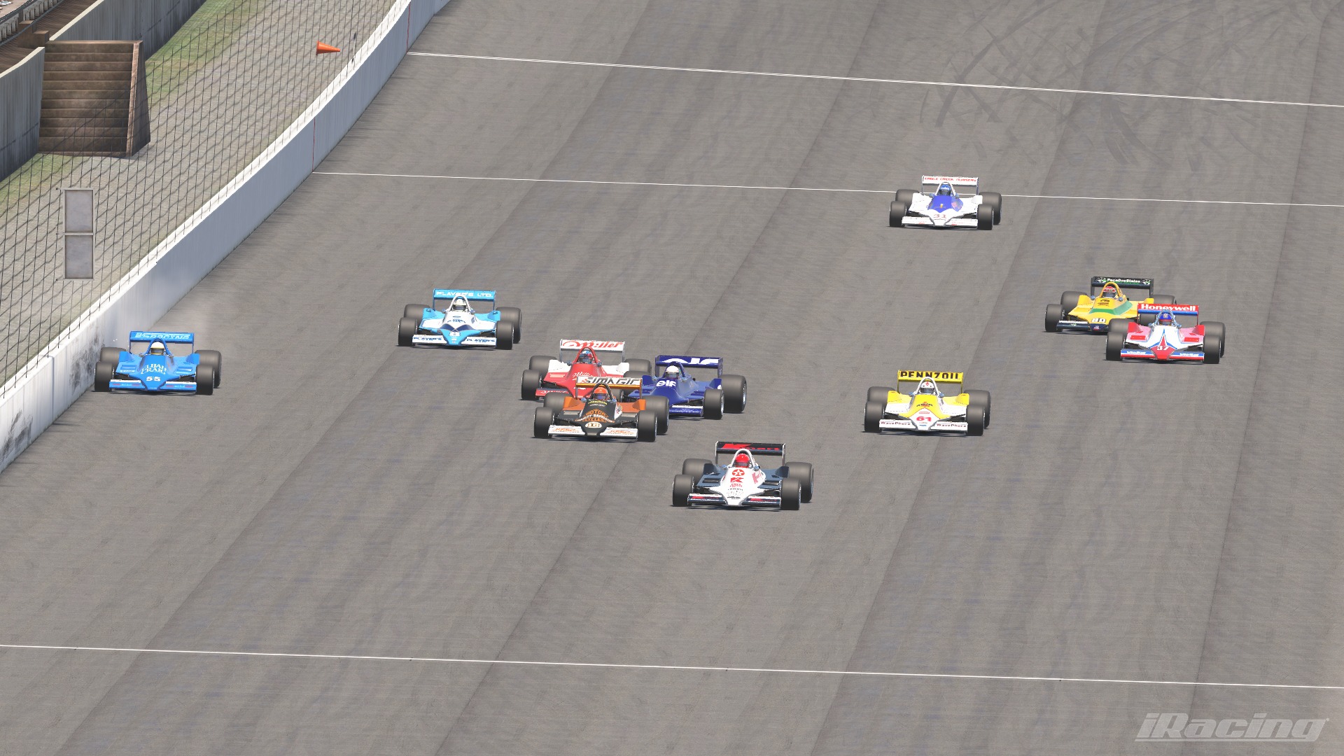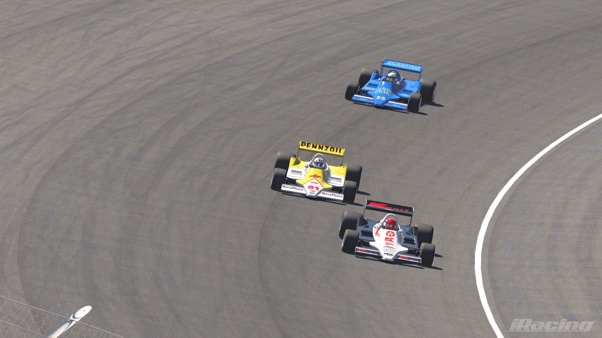 Mike Erter led the field to the green flag and had a good start, taking the lead, while Breuning and Smithem struggled with fishtailing cars, mixing things up right away: It was Phil Peterson running 2nd initially, while Warren got unlucky with a black flag for passing illegally at the messy start.
